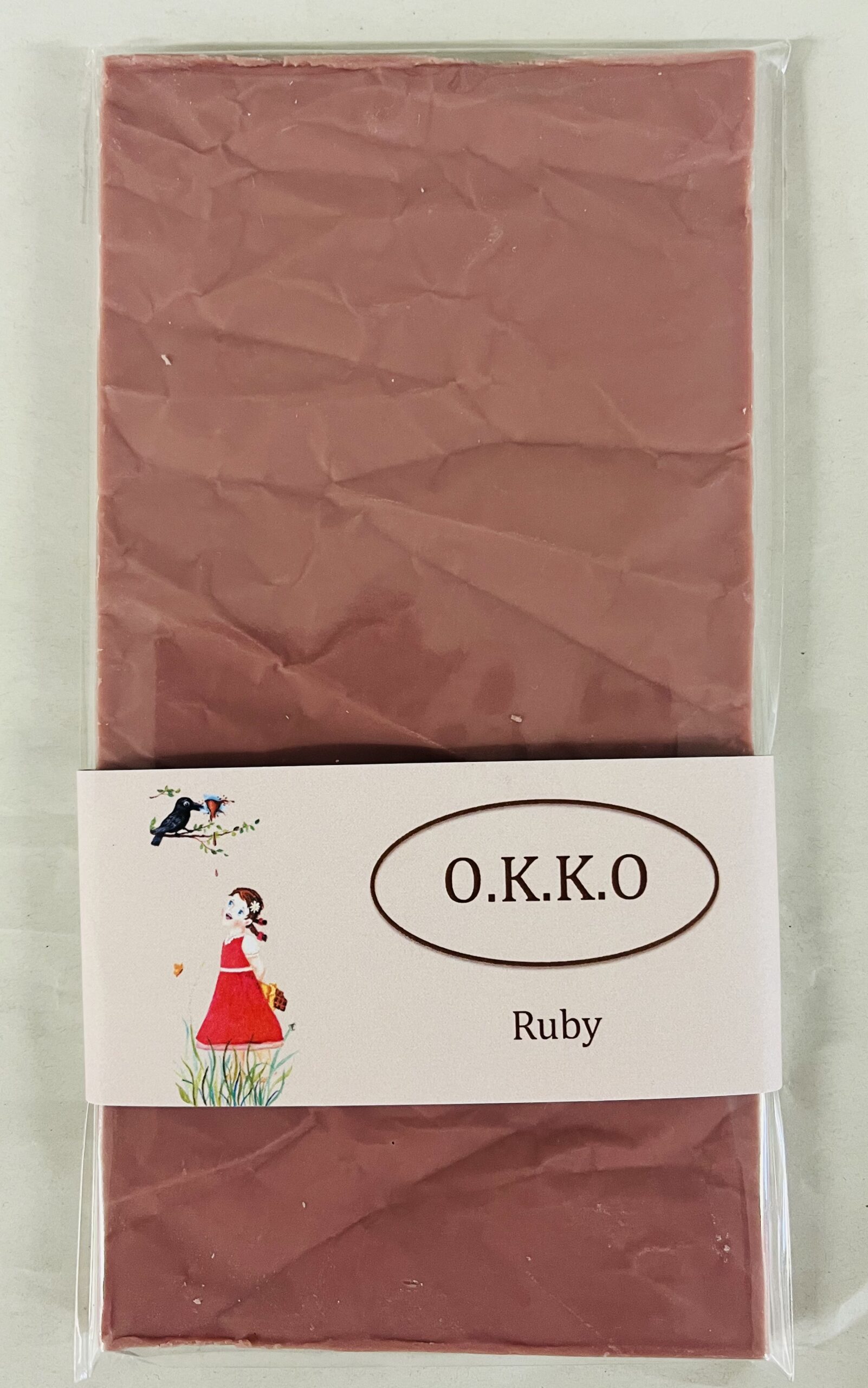 Le chocolat Ruby, savoureux et fruité ! Il ne contient ni colorant ni arôme.  Son secret réside dans les propriétés des fèves rubis, une variété rare dont les fèves sont soigneusement sélectionnées pour libérer leur couleur naturelle et leur saveur fruitée.