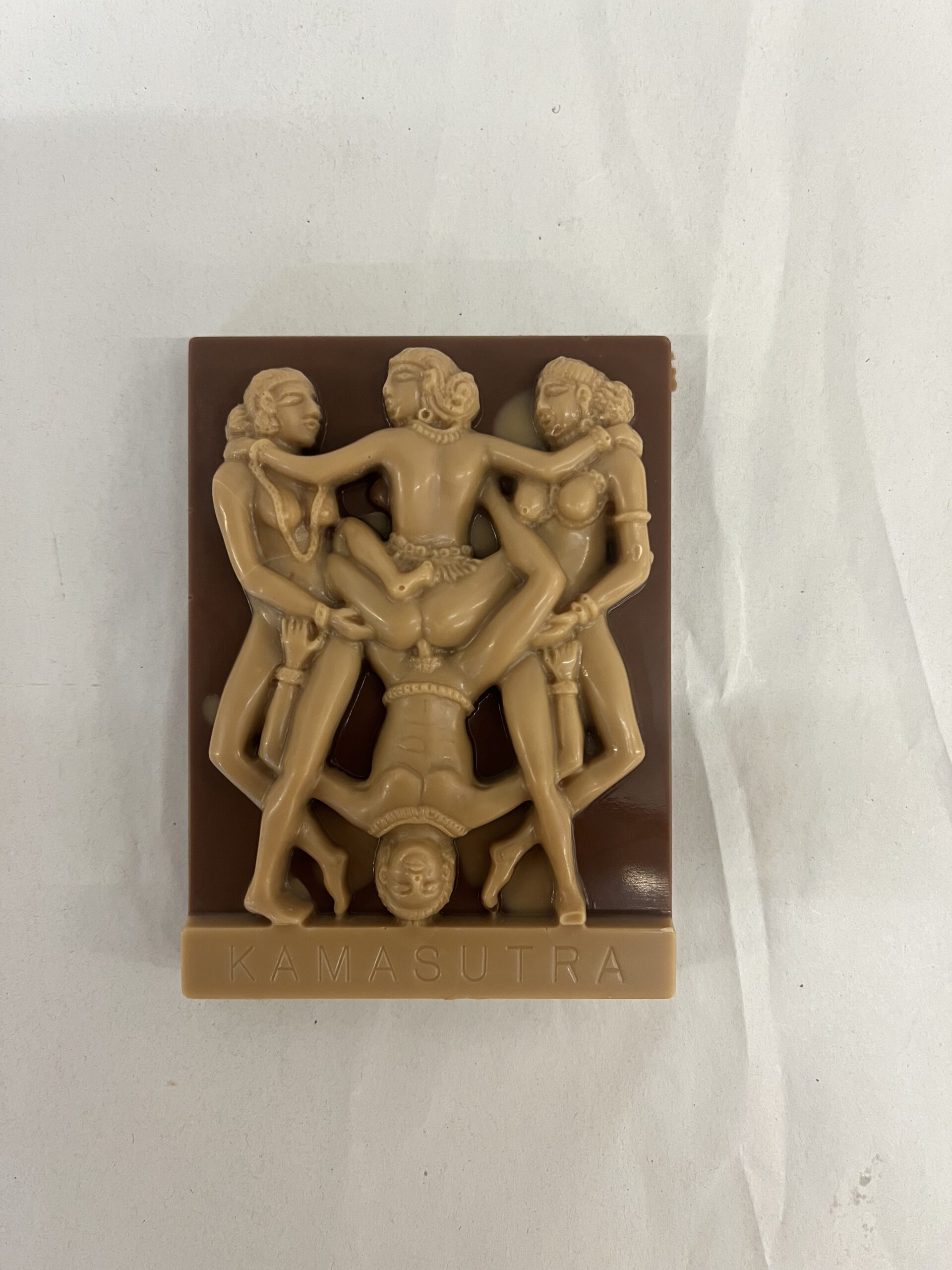 Ingrédients : sucre, beurre de cacao, poudre de LAIT entier, BEURRE FONDU, PETIT-LAIT en poudre,  maltodextrine, LAIT écrémé en poudre, fèves de cacao écalées, émulsifiant, (E322 :lécithine de SOJA), CARAMEL, vanille*Madagascar. Peut contenir des traces de NOISETTES et AMANDES.