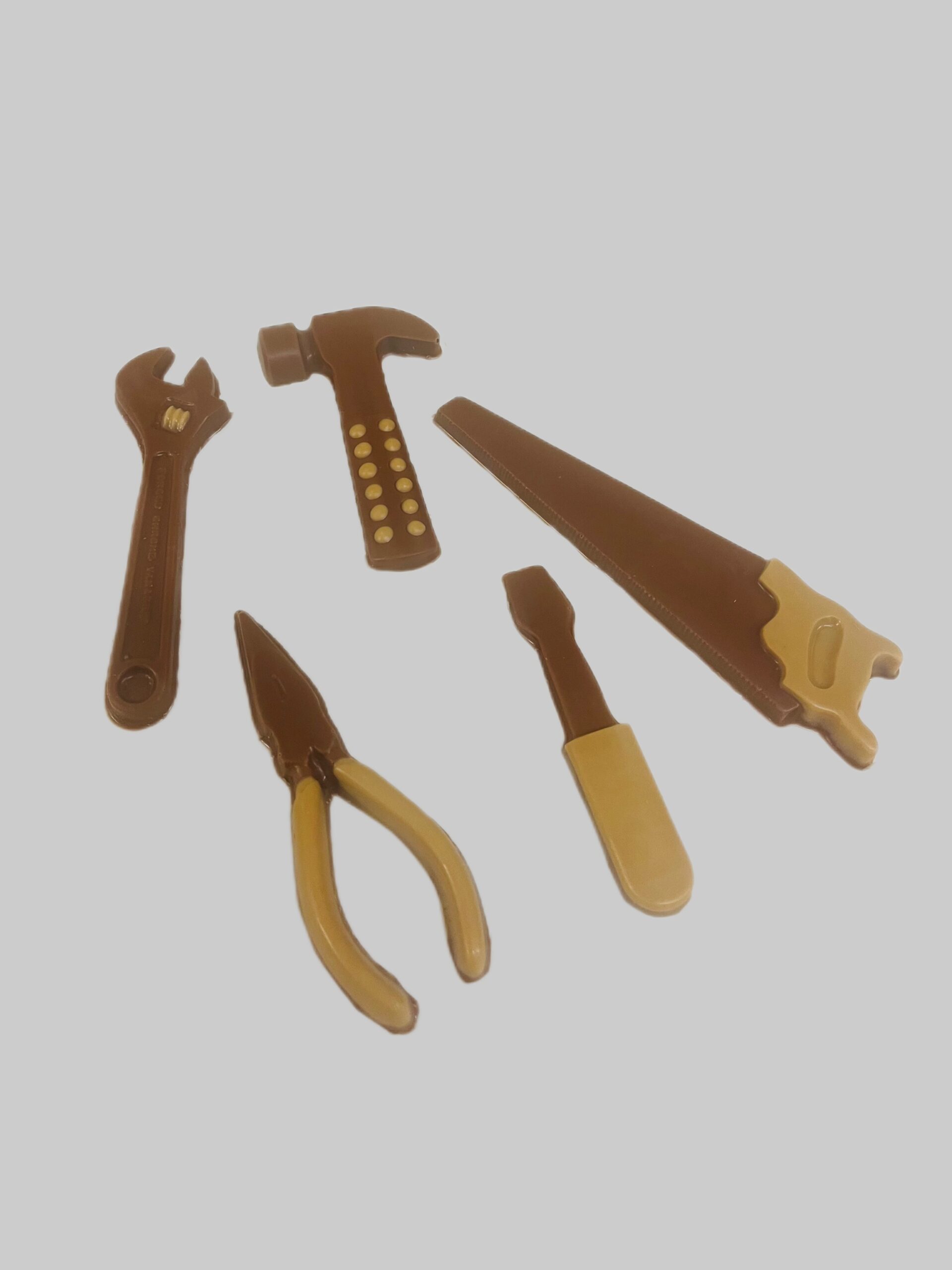 Marteau en chocolat au lait et décoration en chocolat bond.