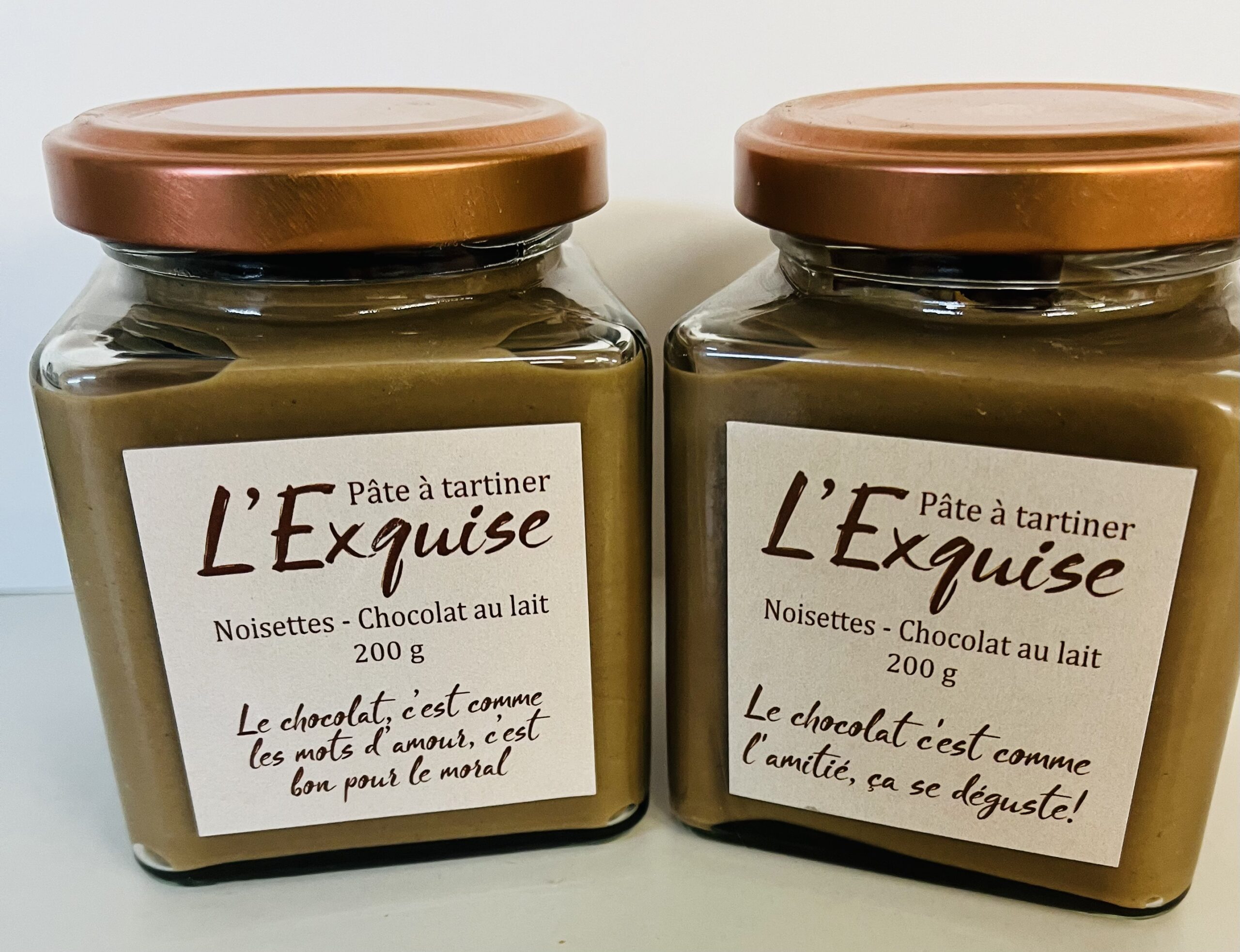 Ingrédients: NOISETTES, sucre, beurre de cacao, huile coco, poudre de LAIT entier, poudre de cacao (pauvre en matière grasse), beurre d’illipe, beurre de karaté, LAIT écrémé en poudre, émulsifiant (E322 lécithine de SOJA), vanille de Madagascar.